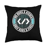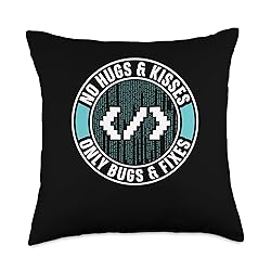 Programming Developer Job It Software Developing No Hugs & Kisses Only Bugs & Fixes Coder Coding Throw Pillow, 18x18, Multicolor