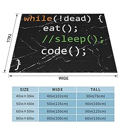 【Premium Material】: 40"x30" Throw blankets Made of 100% flannel microfiber polyester, Cuddle up and experience the ultimate comfort with our luxurious blanket. outdoor blanket flannel blanket Which is super soft, fluffy, lightweight anti-pilling, anti-wrinkle, and non-shedding and breathable.Fleece Blanket Throw SOFTER and WARMER than usual blankets.Make you feel extra warm and comfortable on cold autumn nights. 【Blanket Size】- The Funny Computer Science Programmer Eat Sleep Code beach blanket sizes : 40 x 30 inch, 50"x40 inch , 60"x50 inch, 80"x60 inch.Stay warm and cozy all year long with this throw blanket. Perfect for snuggling up on the couch, sofa, bed while watching TV or at the chilly movie theater or having a comfy nap in your work. Suitable for outdoor use, especially for traveling, camping and picnic,sofa blanket,travel blanket 【Soft Blanket Available Occasions】 Picnic Blankets A great addition to your bedding collection - sofa, couch, bedroom, living room, guest room, kids room, RV, vacation house.Our Funny Computer Science Programmer Eat Sleep Code Fluffy blankets are moderate in thickness, will not have a strong sense of pressure, and suit for all-seasons. 【Gift Blanket】: Perfect personal gifts for any occasion like: friend's birthday, Mother's Day, Father's Day, housewarming, Valentine's Day and other holidays. Could be offering as bed blanket, shawl blanket, air-conditional blanket , nap blanket , kids blanket , travelling blanket ,camping blanket , picnic blanket, swaddle blanket, play mat or pet blankets. So it's a great gift for mom, father, friends, girls, boys, kids, teens, boyfriend, girlfriend, dogs, cats, pets ect. 【100% Satisfaction Guarantee】 : Funny Computer Science Programmer Eat Sleep Code Warm Blanket If you have any dissatisfaction with our products, please contact us. Our professional customer service team will reply you within 24 hours.