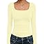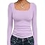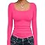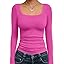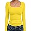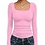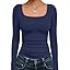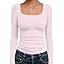 Trendy Queen Womens Long Sleeve Shirts Crop Tops Fall Fashion 2025 Square Neck Going Out Basics Tees Y2k Clothes