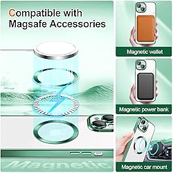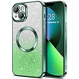 Hython for iPhone 13 Case Clear Magnetic Glitter Phone Cases [Compatible with MagSafe] Full Camera Lens Protector Slim Gradient Sparkle Luxury Plating Shockproof Protective Cover Women Girls, Green
