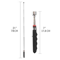 STRONG MAGNET — Telescopic magnets are ideal for out-of-reach places rescuing iron parts or picking up screws without bending over.Example: bolts, metal nuts, needles, pins, coins, keys and other made from iron, cobalt, hematite, nickel and some steel. This long magnetic pickup tool won’t work on most stainless steel , because it’s not usually magnetic. WIDE RANGE OF APPLICATIONS — Great for garage, home, office, and yard ;Ideal for home, in the office, warehouse, car, Each place can be equipped with one, in unexpected moments, you will get its help ! Providing convenience for life! EXTENDS UP TO 31IN — Only 7 in long when retracted, this compact, durable magnetic sticks easily fits in your tool kit. The magnetic tool extends out to 31'' and the 0.87'' magnetic head slips inside small, tight spaces. COMFORTABLE CUSHION GRIP HANDLE — The non-slip, cushioned handle makes this tool magnet extremely comfortable to hold. And, thanks to the pen pocket clip, carrying this magnet wand is easy too. UNIQUE GIFTS — This magnetic pickup tool is the perfect gift for any holiday, it inadvertently provides us with great convenience whether in daily life and work or in leisure time!At Christmas,Birthday,Father's Day, Gift for Men Women Husband Elderly!