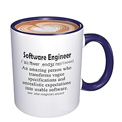 GOOD GIFT IDEA: For a sofeware engineer who is so immersed in the computer all day, nice hot coffee in a funny mug will jumpstart their day. Do you want to surprise your boyfriend, dad, husband, brother, uncle, or friend who is a programmer on their special day? Or want to show appreciation to your best programmer ever? Show appreciation for their hard work with this humorous coffee mug and make them laugh real hard and make them feel special. FUNNY GIFTS CHOICE: This unique funny mug will catch the attention of anyone who you want to give the gift for.It can be used as birthday or new year christmas and other occasions. The mug are made of high quanlity and printed on both sides. Mesured 3.23 inch wide and 3.74 inch length. EXQUISITE PACKAGING DESIGN. Each mug is carefully packaged in an unique designd gift box. Don't bother preparing for extra gift wrapping. You can give presents right away. UNIQUE AND ELEGANT STYLE: The simple but stylish outlook of the cute mugs with the loving text printed on both sides, is going to make them the new gossip topic of your visitors. The elegant style of the coffee mugs is going to make them the absolute focal point of your gatherings. NOT SAFE FOR DISHWASHER. Handwash Only. This 11 Ounce white ceramic coffee mug also makes a great tea cup with its large, easy-grip handle.