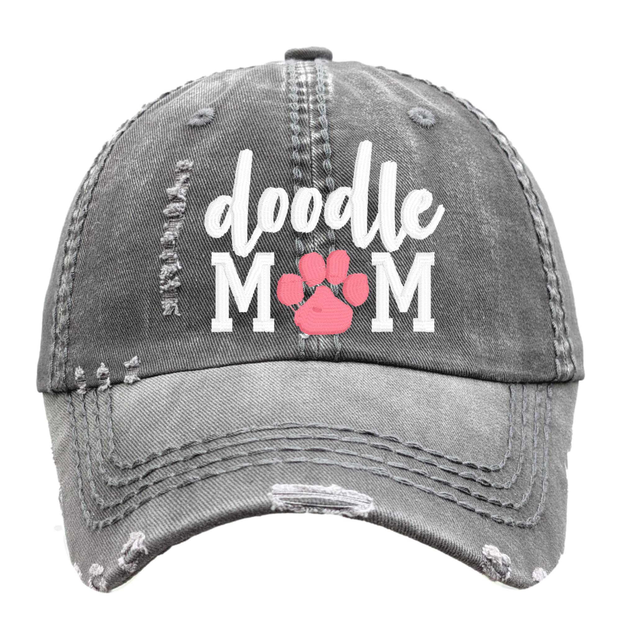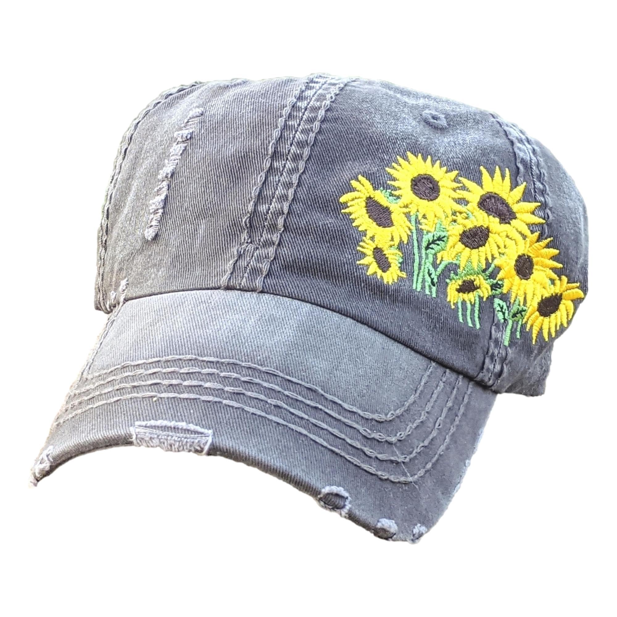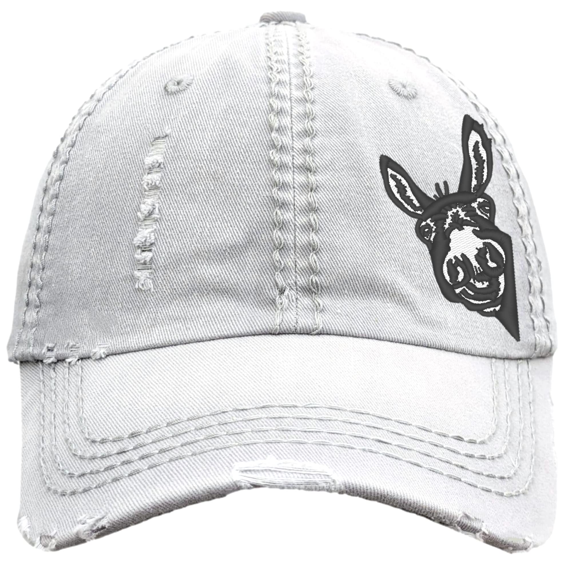 Distinct Headwear women's embroidered Lovey or custom text mesh back adjustable baseball cap with standard ponytail hole. Optional clear rhinestones can be added in the customization area. One size fits most with a lower to mid profile fit on most customers. Adjustable hook and loop closure back. Soft and flexible distressed dark grey cap with fully embroidered design in white thread. Embroidered in the US - made to order. If adding rhinestones, all rhinestones are clear and adhered to the bill with a heat based adhesive for a strong bond.