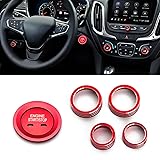 x xotic tech AC Radio Volume Headlight Switch Knobs + Keyless Engine Push Start Button & Surrounding Ring Cover Trim Compatible with Chevrolet Equinox 2018-2023, Malibu 2016-2023 (Aluminum Alloy, Red)