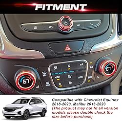 Material: Made of high quality aluminum alloy, durable, dustproof, anti-scratch and anti-corrosion. Fitment: Compatible with Chevrolet Equinox 2018-2023, Malibu 2016-2023. (The product may not fit all version models, please double check the size before purchase) Design: Slip texture design, bright color, nice decor for your vehicle interior, fit to the vehicle perfectly and make your car stand out in style. Package Included: 6pcs/set, 2pcs covers for AC Knobs, 1pc cover for Volume Knob, 1pc cover for headlight Knob. 2pcs covers for Engine Push Start Button. Easy Installation: The pacakge comes with double-sided adhesive paste for firmer installation, easy to install and tear off without any traces.