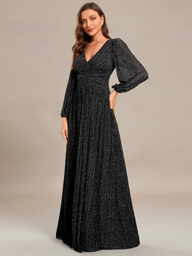 Ever-Pretty Women's A-Line Formal Wedding Guest Dresses Long Lantern Sleeves Floor Length Glitter Evening Gowns