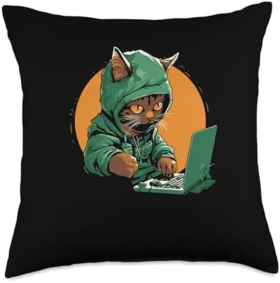 Programmer Gifts & Accessories Coder Programmer Developer Software-Programming Coding Cat Throw Pillow, 18x18, Multicolor