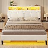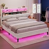 【Practical Storage Headboard】-The bookcase headboard allows you to conveniently place your mobile phone, books and other commonly used small items.Additionally, of which the shelves on either side are made of glass for light transmission, beauty and practicality. The storage headboard also can be opened, providing you with a hidden storage space, which is very practical. 【Smart LED Bed Frame】-This HAUOMS bed frame supports the headboard and underbed RGB LED light. beautiful Multi-colour RGB LED Light(There are over 60000 colors to choose from),Phone App +Remote Control multiple control modes for you to effortlessly create your favorite bedroom atmosphere. Whether you want soft, warm lights for reading or vibrant colors for ambiance, this smart bed has it all. Start enjoying the endless possibilities of this modern smart LED bed frame! 【Storage Headboard with Charging Station】-The built-in power strip on the headboard has 2 outlets &1 USB ports and 1 Type C, which is very convenient for you to charge your phone, tablet, headphones and other electronic devices. The recommended mattress height is 8-12 inches 【Under-Bed Lights & Storage】-The under-bed light gives the bed frame a stunning visual effect, which is equivalent to a small night light, bringing you a more technological and convenient experience at night. the queen bed frame features 6 inches of under-bed storage space perfect for storing extra odds and ends. You can store storage boxes, suitcases and more to keep your bedroom looking tidy, and the sweeper is easy to get in and out of, no more bending over to clean. 【Sturty & Durable Structure】-Designed with durable wooden slats, 12 solid wooden slats, 2 metal brackets, and 9 legs to ensure the comfort and durability, the maximum weight recommendation is up to 800 pounds. To avoid noise caused by friction between crossbeams, we designed an exclusive sponge patch for the main beam. We are trying to provide a safe and convenient bed frame for our clientsof the bed frame. Notes: The headboard shelf and inner layers of the bed's soft upholstery are made of FSC-certified wood