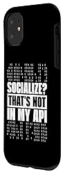 Programming Developer Culture design. Then this is made for you as a developer. Programming and Software Engineering are your passion? Makes a perfect surprise for any programmer, software engineer, developer, coder, computer nerd out there. This design reads: "Socialize? Thats Not In My Api". This design makes a great birthday or christmas present. Two-part protective case made from a premium scratch-resistant polycarbonate shell and shock absorbent TPU liner protects against drops Printed in the USA Easy installation