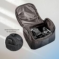 Versatile Design for Multiple Cameras: This Small Soft Padded Camera Bag is perfect for Canon, Sony, Olympus, Samsung, and Nikon cameras. It also works great as a video camera bag, camera case, or even a small camera pouch, offering an ideal fit for a variety of camera types Perfect for DSLR and Mirrorless Cameras: Ideal for DSLR camera bag small needs, this bag offers secure storage for your camera equipment, with an adjustable interior divider to safely accommodate your camera, lens, and accessories Compact and Lightweight for Easy Travel: This camera sling bag is lightweight and travel-friendly, with a durable, padded construction to protect your gear while you're on the go. It’s the perfect gadget bag for any photographer or videographer Convenient Storage Options: Features additional pockets for organization, including webbed side and back pockets to store memory cards, batteries, lens cloths, and cables, keeping everything in place for quick access Comfortable Carrying with Crossbody Strap: Comes with a removable shoulder strap for hands-free carrying and a top carry handle for convenience. The crossbody camera bag style provides easy mobility and quick access during shoots