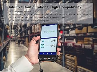 Basic Introduction - This rugged Android handheld data terminal is developed based on a superior Octa-core CPU and GMS certified Android 13 OS. It integrates multiple function modules incl. 1D/2D barcode scanner, 13MP camera, Bluetooth, WiFi & 4G. Particularly designed for enterprise mobility applications in retail, distribution, field service, manufacturing, shipping, logistics, warehousing etc., tasked with delivering high work efficiency, reducing operational costs. Professional Barcode Data Capturing - With integrated Honeywell 2D scan engine, the Android scanner provides fast & accurate bar code reading capability on all 1D & 2D bar codes. Ideal for scan-intensive environments that require high efficiency bar code collection throughout the enterprise. The scan wedge function enables excel or web-based warehouse & inventory applications. SDK available for customized development. Big Touch Screen & Large Capacity Battery - This Android handheld computer & mobile scanner comes with a 5.5-inch big screen and 4800mAH detachable Li-ion battery. It brings relaxing operating with single hand as well as big enough display. The long-lasting battery allows full day work without worrying about data losing in the field & workforce productivity. Compact & Durable Design - The ergonomically designed protective frame of this mobile device provides outstanding drop specification - can survive up to 1.5 meters/4 feet to concrete surfaces. And it is IP65 rated water-proof and dust-proof. Can withstand moisture, water, rain, dirt, mud, sand. Ideal for wild daily use in warehouse, logistics, manufacturing environments. The package comes with: 1* Android barcode scanner, 1* wall charger, 1 * lanyard, 1*USB cable. Optional dock charger (not included in the package): B0DQ7Q786P. Spare battery: B0FBWFJH9R. Customer service: [email protected]. Some explanations: 1, about screen timeout issue: the default setting is 1 minute. You can make a change in: Settings =>Display =>Screen timeout, like any phones. You can set up to 30 minutes. 2, About "Shattered Glass Screens" issue: there is glass screen protector on the device touch panel. If screen protector is broken, you may buy spare screen protectors or contact us for replacement.