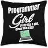 Programmer Girl Computer Debugging Coder Geek Programmer Pretty Girl, Clever Like A Boy Throw Pillow, 16x16, Multicolor