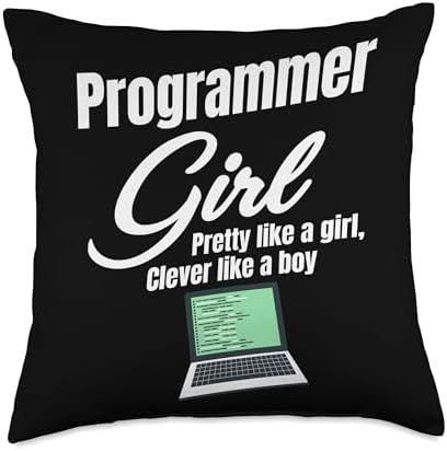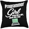 Programmer Girl Computer Debugging Coder Geek Programmer Pretty Girl, Clever Like A Boy Throw Pillow, 18x18, Multicolor