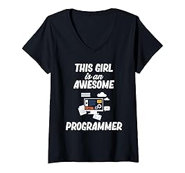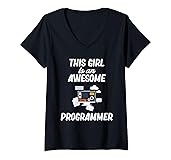 This Girl Is An Awesome Programmer Computer Debugging Coder V-Neck T-Shirt