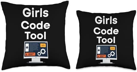 Programmer Girl Computer Debugging Coder Geek Girls Code Too Programmer Computer Debugging Coder Geek Throw Pillow, 18x18, Multicolor