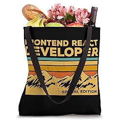 Frontend React Developer Special Edition For A Frontend React Developer is perfect for developers who love Frontend React Development programming. 16” x 16” bag with two 14” long and 1” wide black cotton webbing strap handles. Made of a lightweight, spun polyester canvas-like fabric. All seams and stress points are double-stitched for durability, and the reinforced bottom flattens to fit more items and hold larger objects. Spot clean/dry clean only.
