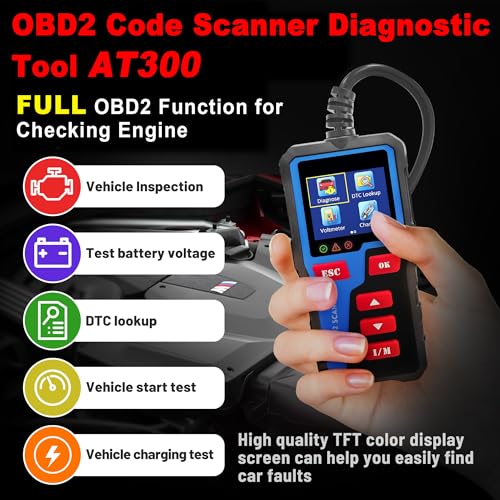 AT300 Car Code Reader, OBD2 Car Code Scanner Check Engine Light Fault Code Reader Scanner CAN Diagnostic Tool for All OBDII Protocol Cars,Cranking Test