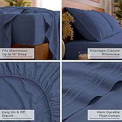 Mellanni Full Sheets Set - 4 PC Iconic Collection Bedding - Hotel Luxury, Extra Soft, Cooling Bed Sheets - Wrinkle, Fade, Stain Resistant (Full, Blue Nova)