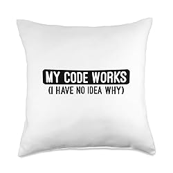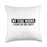 Programming Humor Designs for Software Engineer My Code Works I Have No Idea Why Funny Software Developer Throw Pillow, 18x18, Multicolor