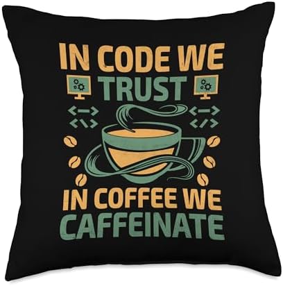 Programming Coffee Caffeine Development Coding Programmer Coder Developer Nerd Coffee Lover Throw Pillow, 18x18, Multicolor