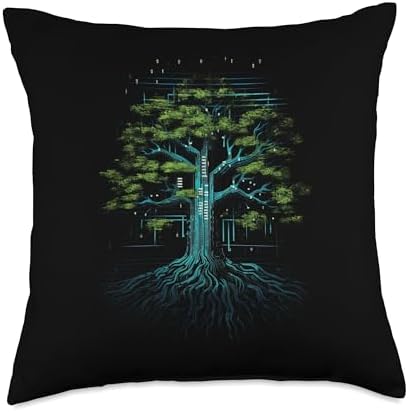 Binary Hacking Coding Software Programming Binary Code Tree Computer Science Technology Coder Throw Pillow, 18x18, Multicolor