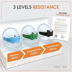 3 Pack Set – BPA free food grade silicone exercisers for Beginner, Intermediate & Advance users (30lbs, 40lbs, 50lbs resistance), package includes user manual. Each resistance level is the same size; 2.7" width 2.0" length 0.6" height . Requires just 10 min of daily exercises to achieve a toned & defined face. THE FULL-FACE ACTIVATOR: Innovated by Mayena, product innovations include 1) Design: arc shape to activate all facial muscles during the exercises 2) Safety: Extended teeth guards to eliminate any choking hazard 3) Durability: Hard shell silicone to prevent teeth penetration and premature wear and tear. 4) Comfort: adjusted to fit any mouth size. Slim and Tone Your Face – Activate facial muscles, increase facial blood flow and oxygenation while simultaneously receiving a jaw workout. The exercises will tone the face & help define a jawline. Our jaw sharpener 3 set can be used by men or women. Easy to Exercise – Use product anywhere & anytime. Easy to exercise indoors or outdoors, great jaw toner for men and women. Pack includes 3 carrying cases for each resistance level, product requires 10 min of daily consistent use to see best results. Younger, Firmer & Fresher – See clear difference in before & after images after few weeks of use. Fresh blood flow to the face rejuvenates cells and promotes collagen stimulation, resulting in a more youthful appearance. Activated strong muscles maintains a firm and supple facial skin for longer in life.