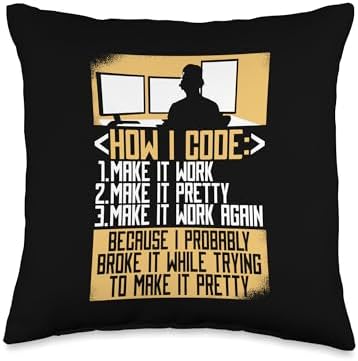 - Then this is made for you as a developer. This design makes a great birthday or christmas present. This design reads: "How I Code 1. Make It Work 2. Make It Pretty 3. Make It Work Again Because I Probably Broke It While Trying To Make It Pretty".