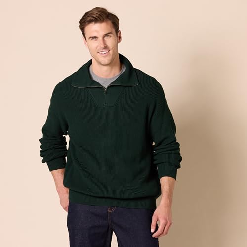 Amazon Essentials Mens Quarter-Zip Rib-Knit Relaxed-Fit Sweater
