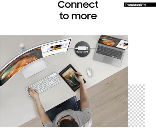 Samsung's Ultra-WQHD Monitor with a 34" 1000R curved display surrounds you with a 21:9 aspect ratio to maximize your screen's real estate. Featuring Thunderbolt™ 4 connectivity and multiple ports, you can power your devices while transmitting data. Experience 1 billion vivid colors with HDR10, providing near limitless hues, with darker darks and brighter brights. Built-in speakers minimize connections and free up desk space, while 100Hz refresh rate and AMD FreeSync™ keep the screen smooth across all applications and diminish screen stuttering and image tearing. With KVM Switch, Easy Setting Box, Picture-By-Picture, and Picture-In-Picture, you can play games while connecting with friends, watching movies, or working on projects. The ergonomically designed height-adjustable monitor creates a customized, comfortable environment in which to work and play, and TÜV-certified technology reduces eye strain. *Screen image simulated HDR mode must be activated through PC settings. **Screen image simulated. AMD FreeSync™ support available only when connected via HDMI or DisplayPort. ***100Hz refresh rate unavailable in Picture-by-Picture mode. Requires the Easy Setting Box program on each PC, available for download at samsung.com. ****Screen image simulated. Screen brightness does not adjust when the surrounding lighting is greater than 200 lux.