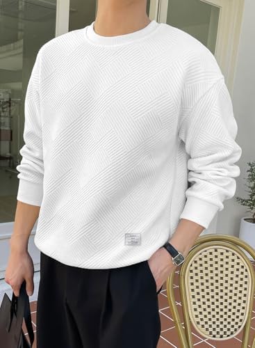 Men's Crewneck Sweatshirts Soild Color Geometric Texture Long Sleeve Casual Pullover Shirt