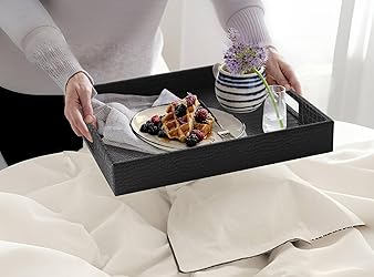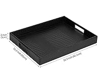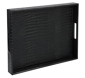HofferRuffer Rectangle Serving Tray with Hole Handles for Coffee Table, Breakfast, Tea, Food, Butler - Countertop, Kitchen, Vanity Serve Tray, 16.2 x 12.2 x 2 inches, Faux Leather (Black Croco)
