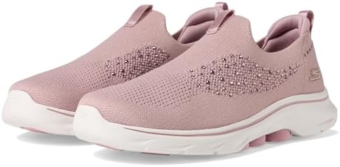 Experience premium comfort with these running shoes for women from Skechers. The GO WALK 7 Blink sneakers combine style and functionality with their engineered knit upper featuring eye-catching rhinestone embellishments. These womens sneakers offer exceptional comfort with Air-Cooled Goga Mat insole and Ultra GO cushioning. The Stretch Fit design provides sock-like comfort while the dual-density traction outsole ensures stability during your walks.