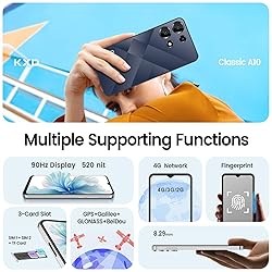 - KXD 2024 A10 Unlocked Smartphone Under $100, 6.52" HD+ Display, 4500mAh Long Battery, 8GB+128GB, Dual SIM, Face ID, Android 12 – Budget Phone for Seniors & Teens Network Technology: GSM / WCDMA / LTE 2G, 3G, and 4G Band Support Dual-SIM (Nano-SIM) Body: Dimensions 164.1 x 75.9 x 8.2 mm Weight 183 grams Form Factor: KXD A10 Display: Type: IPS LCD Size: 6.5 inches Resolution: 720 x 1600 pixels Platform: Operating System: Android 12 CPU: Octa-Core (1.6 GHz) Storage: 128 GB RAM: 12 GB (4 + 8 GB) External Storage: MicroSD Main Camera: Triple: 13 MP + 5 MP + 2 MP Features: LED Flash, Autofocus Video: 1080p@30fps Selfie Camera: 8 MP Connectivity: Wi-Fi: 802.11 a/b/g/n/ac Bluetooth: 5.3, A2DP, LE USB: Type-C 2.0 5V/2A 10W GPS: GPS, GLONASS, GALILEO, BDS Battery: Capacity: 4000mAh Internet usage: up to 19h (LTE), 18h (Wi-Fi) Video playback: up to 18 hours. Audio playback: up to 74 hours. Audio and video: Audio formats: MP3, M4A, 3GA, AAC, OGG, OGA, WAV, AMR, AWB, FLAC, MID, MIDI, XMF, MXMF, IMY, RTTTL, RTX, OTA Video formats: MP4, M4V, 3GP, 3G2, AVI, FLV, MKV, WEBM Video resolution: FHD (7200 x 1600) Stereo support: no Additional features: Mobile TV: no MHL: no