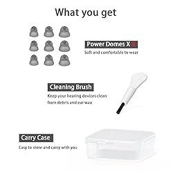 Compatibility: Our hearing aid domes compatible with ReSound LiNX2, LiNX3D, LiNX Quattro and ENYA behind the ear models (both RIC and open fit tubing BTEs). Power Dome: also referred to as 'double' domes, usually opted for those with moderate-severe hearing loss for a better seal of sound. 3 Sizes: Small 10mm diameter, Medium 11.5mm and Large 13mm. Please choose the proper size according to your actual needs or order our trial pack. Including: 9pcs earplugs containing three different sizes for trial. 1pc portable case easy to store and carry. Comfortable to wear: this ear tips are made of flexible hypoallergenic silicone material for a smooth and comfortable fit.