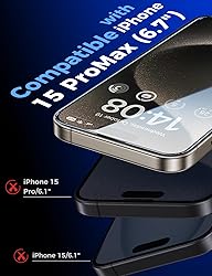 [Automatic Dust Removal Tech] Just cover and pull, the screen protector automatically aligns and takes away the dust. No more worrying about bubbles and dust. Please watch our Dust-Elimination Installation video tutorial before installing. [Speaker Dust Cover] The speaker dust cover is waterproof and dust-proof, and does not affect the speaker's volume. [Screen Protector Compatible with iPhone 15 Pro Max 6.7"] Specially designed ONLY for iPhone 15 Pro Max 6.7", 100% touch accurate. Not compatible with any other iPhone models. [Anti-Fingerprint] Magic John tempered glass screen protector for iPhone 15 Pro Max 6.7" is finished with oleophobic coating to against oil residue from fingerprints from long-term use. [HD Clarity] Ultra-clear glass ensures amazing clarity for viewing experience and Face-ID compatibility.