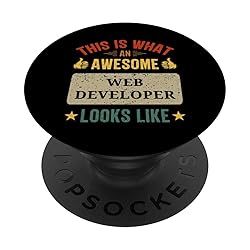 This is what an awesome Web Developer looks like quote, retro vintage outfits. A great Tax Consultant present idea for men and women. Adhesive backing attaches the PopGrip to your case or device. Will not stick to silicone, leather, waterproof, or highly textured cases. Works best with smooth, hard, plastic cases. Not compatible with wireless charging Printed top is swappable with other compatible PopGrip models. Just press flat, turn 90 degrees until you hear a click and remove to swap.