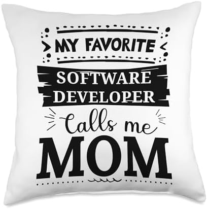 Fun Software Developers apparel My Favorite Software Developer Calls me mom Throw Pillow, 18x18, Multicolor