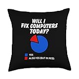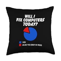 Funny Sysadmin Hardware Software Engineer Apparel Will I fix Computers Today Yes Pie Chart for Tech Support Throw Pillow, 18x18, Multicolor