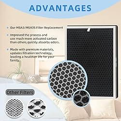 - Breathe worry-free during the seasonal transition period! Our H113 HEPA filter traps pollen and fine dust triggered by spring blooms, while the embedded carbon layer absorbs pet odors from your furry friends. For homes near wildfire zones, it reduces smoke pollutants by 89% within 1 hour (lab tested). Simply slide into your MSA3/MSA3S purifier before bedtime – wake up to baby-safe air in nurseries...All air purifier brand and model names are registered trademarks of air purifier manufacturers. This is not an OEM product and is not covered under air purifier manufacturer's warranty.The Membrane Solutions brand names and logos are the registered trademarks of their respective owners. Any use of the Membrane Solutions brand name or model designation for this product is made solely for purposes of demonstrating compatibility.