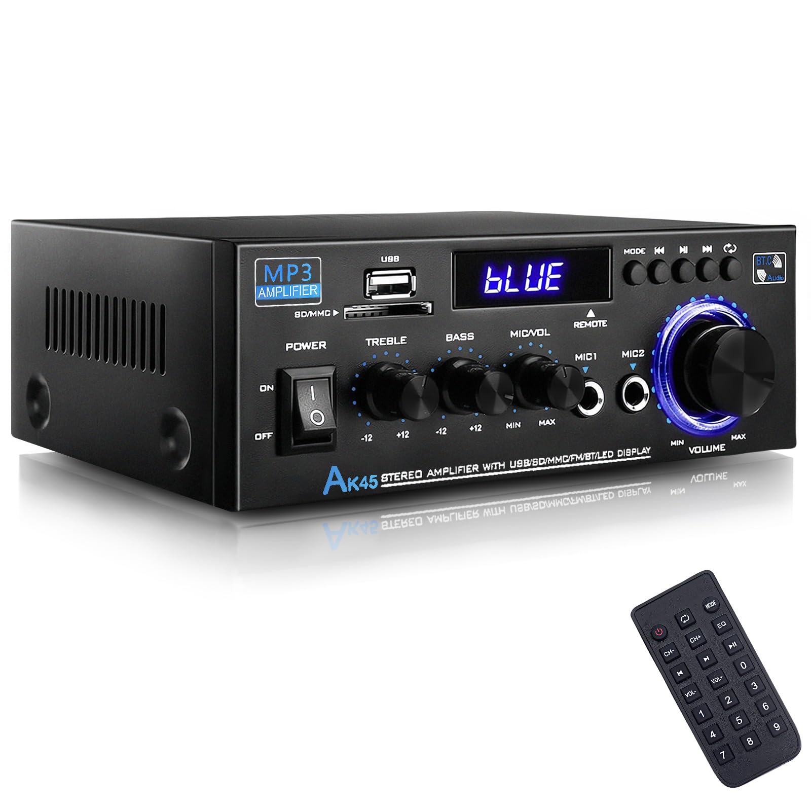 AK45 Pro Amplifier Home Audio Stereo Receivers with Bluetooth 5.0,Max 400W,2.0 Channel Stereo Amplifier System for Home Theater Speakers, Karaoke,Garage,Home Amp with USB,SD,RCA,2 MIC in