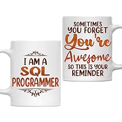 - Sql Programmer 11oz White Ceramic Mug: Monizilucky creates unique funny coffee mugs which make great Birthday gift ideas for men, Birthday gift ideas for women, Valentine’s Day gift ideas, Mother’s Day gift ideas for Mom from Daughter or Son, Father’s Day gift ideas for Dad, Anniversary gift and Christmas present ideas for him or her. This funny coffee mug is made out of high quality ceramic. If you're shopping for a gift, you've found the one. Have a great gift delivered to their door, on-time in a nice gift box. This is the perfect mug for you or for someone you want to bring a smile to. A perfect size mug you can drink tea, soup or coffee out of. ● Printed in the USA ● Worldwide shipping ● Print type: Sublimation printing ● Material: Ceramic ● Color: White ● Sizing: 11oz ● Printed on both sides.