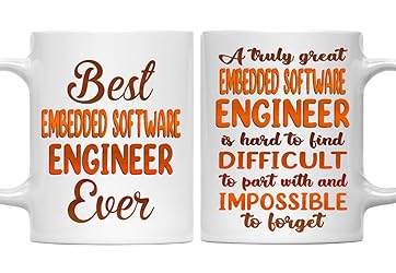 - Best Embedded Software Engineer Ever 11oz White Ceramic Mug: Monizilucky creates unique funny coffee mugs which make great Birthday gift ideas for men, Birthday gift ideas for women, Valentine’s Day gift ideas, Mother’s Day gift ideas for Mom from Daughter or Son, Father’s Day gift ideas for Dad, Anniversary gift and Christmas present ideas for him or her. This funny coffee mug is made out of high quality ceramic. If you're shopping for a gift, you've found the one. Have a great gift delivered to their door, on-time in a nice gift box. This is the perfect mug for you or for someone you want to bring a smile to. A perfect size mug you can drink tea, soup or coffee out of. ● Printed in the USA ● Worldwide shipping ● Print type: Sublimation printing ● Material: Ceramic ● Color: White ● Sizing: 11oz ● Printed on both sides.