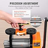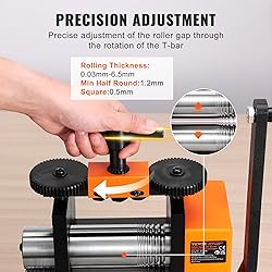 3-in-1 Multi-Function Rolling Mill: Our rolling mill can easily transform malleable metals like gold and silver into thin sheets, square wires, and half-round shapes. Various size options help you process materials into the exact thickness you desire. Finer Precision Work: The wire roller mill features CNC-machined gears, ensuring high accuracy. Rotating the T-bar can finely adjust the roller spacing from 0.03 to 6.5mm. High-Quality 45# Steel: The rollers of our rolling mills are made from 45# steel, providing exceptional wear resistance and high hardness, ensuring durability and preventing scratches, resulting in a smooth mirror-like finish on your metalwork. Rust and Corrosion Protection: The surface of the rolling mill machine body undergoes heat treatment and is coated with rust-resistant oil. The machine is constructed using iron plates and 45# steel, providing excellent wear resistance and corrosion resistance. Wide Range of Applications: Our jewelry rolling mill machine is suitable for gold, K gold, pure silver, 925 silver, copper, aluminum, and other highly malleable metals. It is ideal for crafting bracelets, rings, bangles, and other jewelry, catering to the needs of both jewelry professionals and DIY enthusiasts.