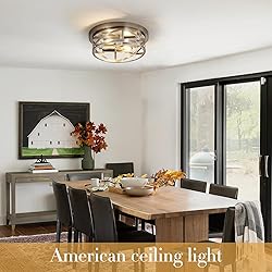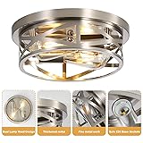 BRUSHED NICKEL CEILING LIGHT: This ceiling light use crafted and metal frame with brushed nickel finish will bring you a country, antique and traditional feeling. Simple round cage design to add a modern, artistic and charming look EASY TO INSTALL: Our indoor close to ceiling light fixture requires no assembly, hard wired, the box comes with all mounting hardware for quick and easy installation. These lights can be quickly flush mounted to your ceiling, create excellent lighting CONVENIENT PACK OF TWO: This listing includes two pack of ceiling lights, providing you with matching fixtures to illuminate multiple areas of your home or office. Whether used individually or together, these lights create a cohesive lighting scheme BULBS REQUIREMENT: Each flush mount ceiling light features 2 * E26 bulb sockets (Max 60W - BULBS NOT INCLUDED). Works with LED, CFL, incandescent bulb. It is also can be dimmable when you used a dimmable bulbs and compatible dimmer switch(not included) DOXVIEZE SERVICE: If there is any damaged part or questions about our modern twin pack 2-light brushed nickel ceiling lights, please feel free to contact us, our customer service team will solve your problem within 24 hours