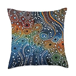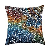 100% Polyester Aboriginal Australian Fabric design. This motif honors the rich history of Australia's Aboriginal culture and invites you to explore subtle nuances through shapes, patterns and colored dots. It creates a vibrant connection between past and present. This fascinating motif honors the rich history of Australian Aboriginal culture and invites you to explore the subtle nuances and messages of this art form through shapes, patterns and colored dots. 100% spun-polyester fabric Double-sided print Filled with 100% polyester and sewn closed Individually cut and sewn by hand Spot clean/dry clean only