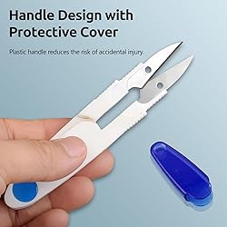 Compact and Travel-Friendly Design: These 4PCS Portable 4 Inch Small U Shaped Scissors are exceptionally compact, making them perfect for on-the-go use. Easily stowable in a pocket or crafting bag, they are ideal for crafters who are always on the move. Versatile for Crafting Needs: Equipped with a safety cover, these yarn cross-stitch thread sewing cutters are perfect for a wide range of crafting activities, including stitch, crafts, and DIY supplies. Their versatility makes them an essential tool for any crafter. User-Friendly for All Crafters: Designed for ease of use, these trimming nippers cater to both right and left-handed individuals, ensuring a comfortable crafting experience for everyone. Efficient Spring Action Mechanism: The scissors feature a spring action mechanism that facilitates easy cutting. Simply press the handle for cutting and release to recover, providing a smooth and efficient snipping experience. Safety and Maintenance Tips: While these scissors are incredibly useful, it's important to keep them away from children due to their sharp parts. To maintain their efficiency, avoid cutting hard items that could lead to blunting.