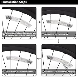 - Features: Made of high quality PMMA plastic material.. High reflective, ensuring cycling safety. Widely used, can be used as warning reflector, safety signs, etc. Wheel Reflectors Installation Instruction:: 1. Wheel reflectors must be visible on each side. 2. Attach the reflector on the spoke at the groove, the nut and turn it clockwise with a coin or similar tool. Slide it toward the rim until it’s tightened. 3.Remember to keep good balance on both ends of the reflector to the rim. 4.The wheel reflectors comes with one fastener for each.
