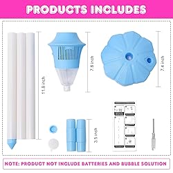 Unimaginable atmosphere experience: imagine that at an outdoor party, wedding or celebration, this vertical bubble machine releases colorful bubbles that float into the sky with the breeze, creating a dreamy atmosphere. Compared to ordinary bubbles machine, it does not need to be placed on a table, and uses its 47-inch height advantage to blow bubbles into the sky, creating a more spectacular visual effect, making every kids attending the event feel as if they were in a fairy tale world. Two different ways of fixing, for different occasions: This vertical toddlers bubble machine can easily cope with both indoor and outdoor situations. You can choose to fill the base with water and fix it, or insert it directly into the soil. Both of these fixing methods are very stable, ensuring that the buble machine will not shake or topple during operation. Compared to ordinary bubble machines that always need to find suitable places to place in order to adjust their height, this product is undoubtedly more convenient and practical. Highly flexible and able to meet different needs: This vertical bubble machine uses a three-section tube assembly design, allowing you to choose the height of either one or two sections for assembly to suit different occasions and needs. Whether you want a more compact size or higher bubble-blowing effect, you can easily achieve it. While ordinary bubble machines often produce bubbles that fly low before landing and disappearing, unable to meet the needs of diverse scenarios. Dancing with bubbles and adding endless joy: When you push the music function switch to the third gear, this automatic bubble machine will bring you a wonderful music experience. The combination of light and cheerful melodies and the flying bubbles in the sky adds more joyful atmosphere to every occasion. The second gear is without music, suitable for those who want to enjoy a quiet moment. The first gear is in the off state, and you can choose according to your actual needs. Flexible mobility anytime and anywhere: No additional power cord is required, and it is not limited by power sockets. The battery-powered design avoids the risk of water or bubble solution contacting the power part, allowing you to use it with more peace of mind. At the same time, battery powered bubble machine avoids inconveniences such as insufficient length of power cord or insufficient sockets, allowing you to enjoy the magic of bubbles on a green lawn, soft beach, or a happy party scene.