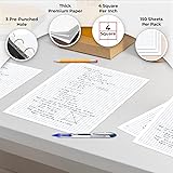 OPTIMAL QUANTITY PER PACK: With each 6 pack containing 150 sheets, this configuration strikes the right balance between offering substantial quantity and manageable organization. It's perfect for users who require a reliable and consistent amount of loose-leaf paper for various tasks. QUAD-RULED PAGES: Graph ruled comes with a grid pattern with 4 squares per inch has 150 Sheets of quad-ruled paper.Each page is quad-ruled, meaning it has the grid pattern on it, allowing for neat and organized work. GLIDE FROM PAGE TO PAGE: When using these graph ruled notebooks, your favorite gel or ballpoint pens will move effortlessly across these smooth pages for A+ notes with minimal ink bleeding or show-through unlike ordinary spiral notebooks. DOUBLE SIDED EFFICIENCY: Each sheet is thoughtfully designed with printing on both sides, effectively doubling the usable space. This feature optimizes the paper's capacity, making it an eco-friendly and resource-efficient choice for extended use. 3-HOLE PUNCHED: The 3-hole punch layout aligns perfectly with the rings of a typical 3-ring binder, providing a neat and secure attachment. This feature enhances the notebook's versatility, making it an ideal choice for teachers, professionals, and anyone who relies on binders for comprehensive organization.