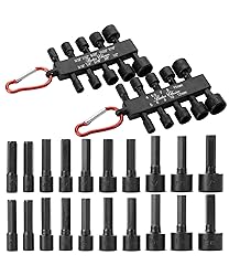 - Bates power nut driver set includes 20 SAE and metric pieces, offering a wide range of sizes for versatile use, along with 2 convenient carabiners for easy organization.Each nut driver is made from chrome vanadium steel, ensuring exceptional durability and strength for heavy-duty tasks.The set features both SAE sizes (1/4", 5/16", 3/8", and more) and metric sizes (4mm, 5mm, up to 12mm) to accommodate various applications.The corrosion-resistant coating protects the tools from wear and tear, providing long-lasting performance even in tough conditions.Perfect for mechanics, DIYers, and professionals, this nut driver set combines convenience, durability, and efficiency for all your fastening needs.